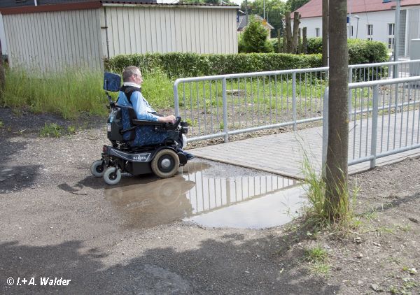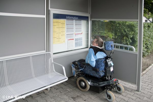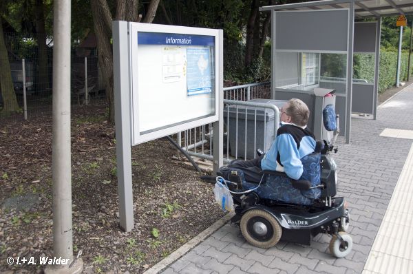 Mit dem schweren Elektrorollstuhl ist ein Heranfahren an den Fahrplan nicht möglich !