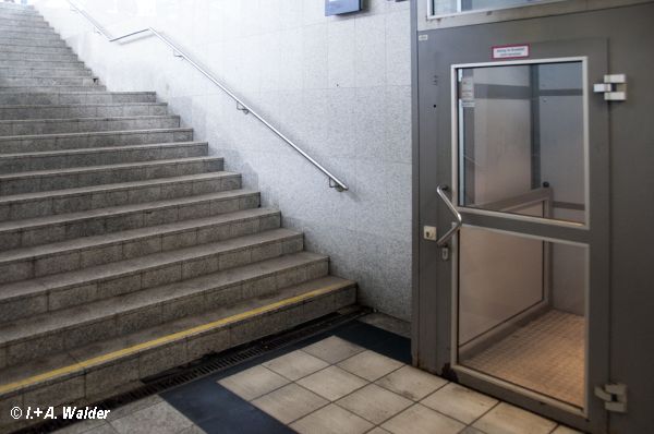 Ein Aufzug, den man zwei Tage vorher bestellen muss, aber das Licht ist immer an !!