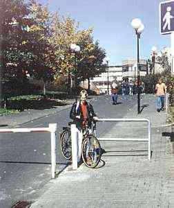 Nicht nur, daß das sichere Abstellen der manchmal recht teuren Räder kaum möglich ist, da die Anschaffung von ordentlichen Fahrradständern den Universitätsetat übermäßig belasten würde (schließlich mußten ja gerade PKW-Parkplätze für 800.000 DM errichtet werden), nein, jetzt wird denjenigen, die sich neben den Fußgängern am umweltfreundlichsten den Bildungshügel "hinaufquälen" buchstäblich ein Riegel vorgeschoben. Mitten in das Nadelöhr der Zufahrt von der Adolf-Reichwein-Straße zum Hauptgebäude wurde ein Absperr-Poller gepflanzt. Exakt etwas unter Lenkerbreite, man macht die Sache ja gleich richtig. Ein kleines Kettchen rechts der Absperrung verhindert dann noch den letzten Durchschlupf. Auch die Ströme der Fußgängerinnen, die zwischen AR und Hölderlin-Gebäude pendeln, werden da jetzt etwas mehr Zeit an der frischen Luft verbringen dürfen. Grund für diese erstaunliche Maßnahme ist wohl der Versuch der Aussperrung des motorisierten Zweiradverkehrs, wobei man mit einem Streich auch noch dem nichtmotorisierten Verkehr das Leben schwer macht. Bei Ausweisung von entsprechenden Motorrad-Parkplätzen würde sich das Problem wahrscheinlich von selbst lösen, allerdings dürften dieser Maßnahme unter Umständen einige der heiligen PKW-Parkplätze zum Opfer fallen. Diesen "radikalen" Entschluß zugunsten von Fußgängerlnnen und RadlerInnen kann man an dieser Universität wahrscheinlich nicht verantworten. Ein Aufzug muß es ja nicht gerade sein; es wäre aber an der Zeit, Verkehrspolitik zugunsten des umweltfreundliehen, nicht-motorisierten lndividialverkehrs zu machen, statt FußgängerInnen und Radlerlnnen auch noch Poller und Ketten in den Weg zu legen.